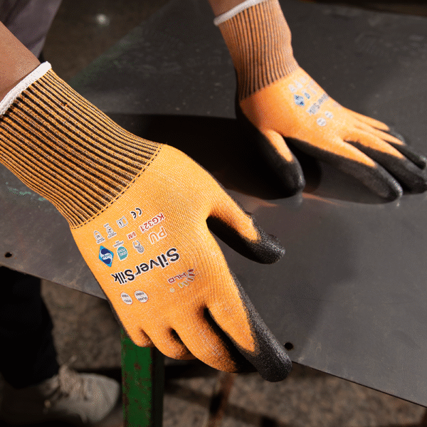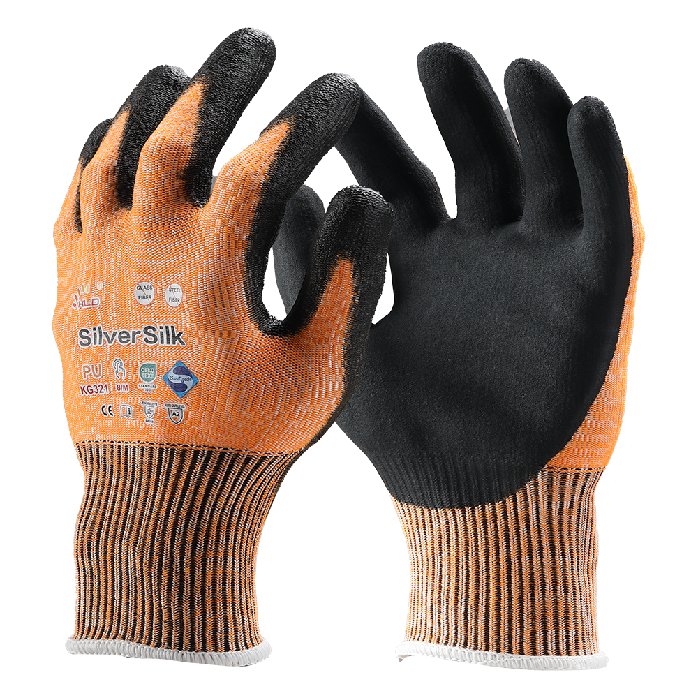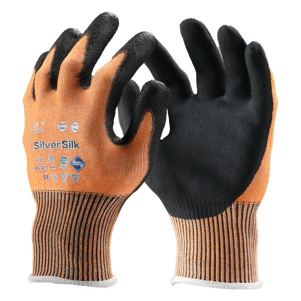 13G A2 silversilk(HPPE) glove core with black PU palm