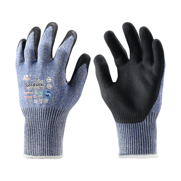 13G A4 Goldsilk (HPPE) glove core with black Topfoam (Nitrile Foam) palm dipped