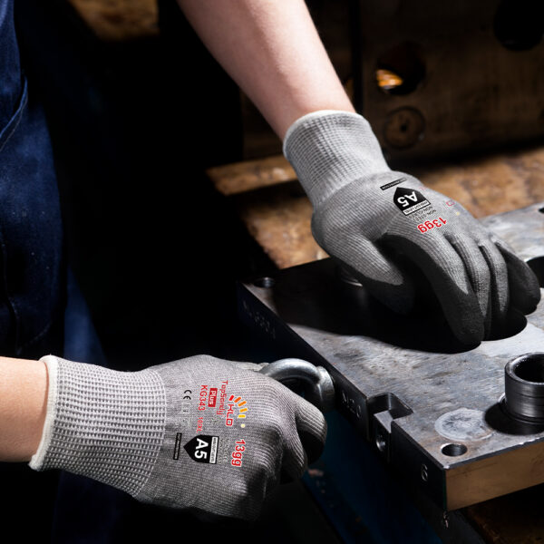 ◆The exclusive Goldsilk@PLUS composite fiber provides EN388 Grade E, ANSI A5 against medium risk.