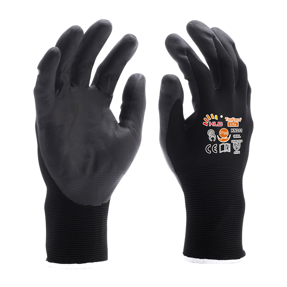 21G Nylon/elastic palm dipped glue Topfoam Lite microfoam nitrile