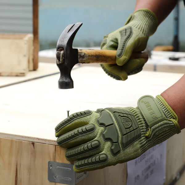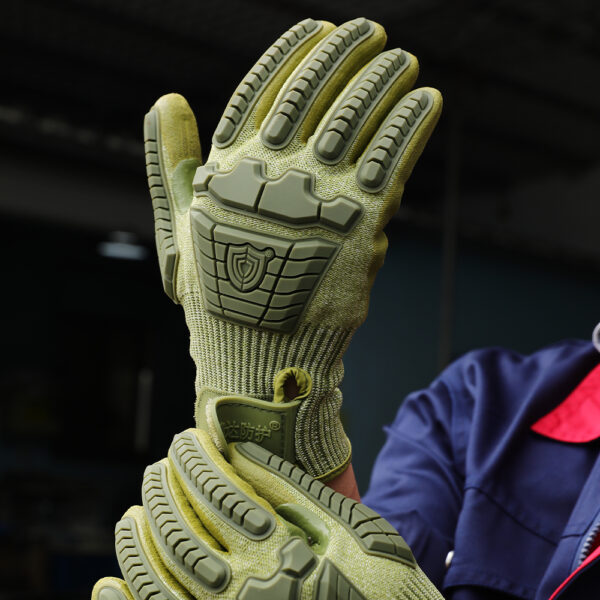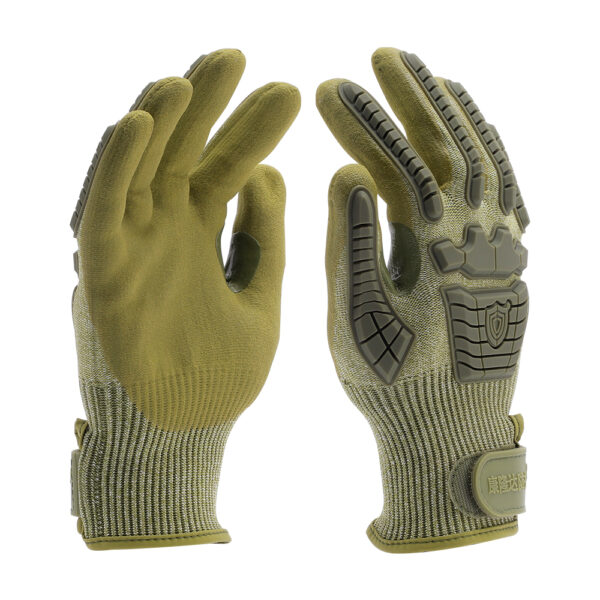 13G HPPE+ A4/D steel wire palm dipped in friction glue, TPR sewn on top of glove